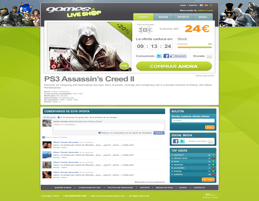Web dedicada a la venta online de videojuegos a través de un modelo de HardDiscount, ofreciendo descuentos del 50% hasta el 90% sobre el precio habitual de venta al público.
